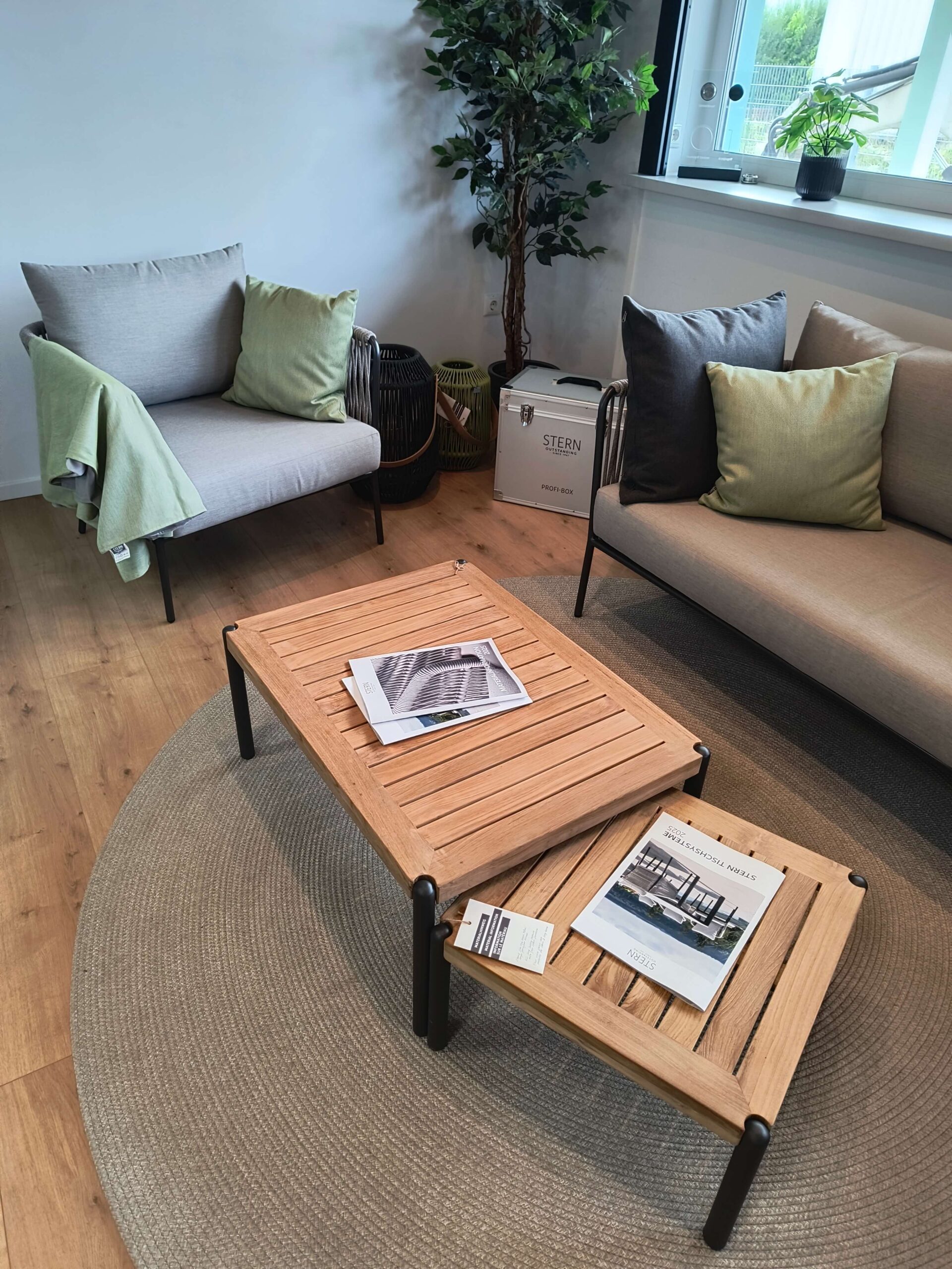 Außerdem finden Sie in unserem Showroom stilvolle Terrassenmöbel von STERN, die Sie direkt passend zu Ihrer neuen Überdachung mitbestellen können.